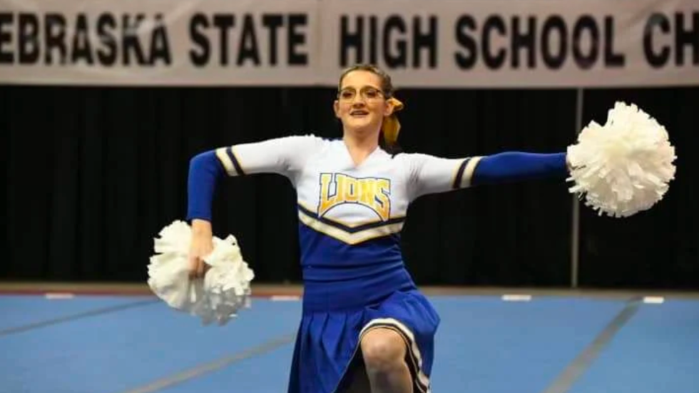 Not only did Katrina perform, but she also made history while doing it by becoming the first cheerleader to ever perform solo at the Nebraska State Cheer and Dance Championships. And to top it off, she came in 8th out of 12 squads — the highest the Lions had ever placed.