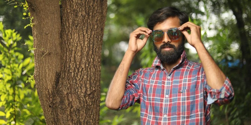 Man with beard putting sunglasses on by Gyan Shahane on Unsplash