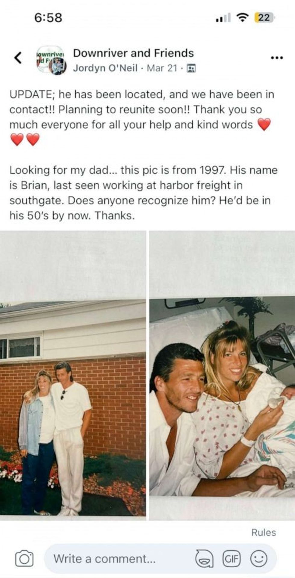 Ahern was well-known in his community. Comments on O’Neil’s post flooded in, particularly in a group called “Downriver and Friends.” People messaged O’Neil with her father’s phone number and even his address, eager to help this woman find her dad.