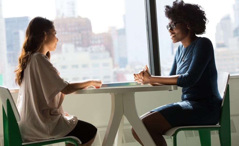 co-workers in conversation